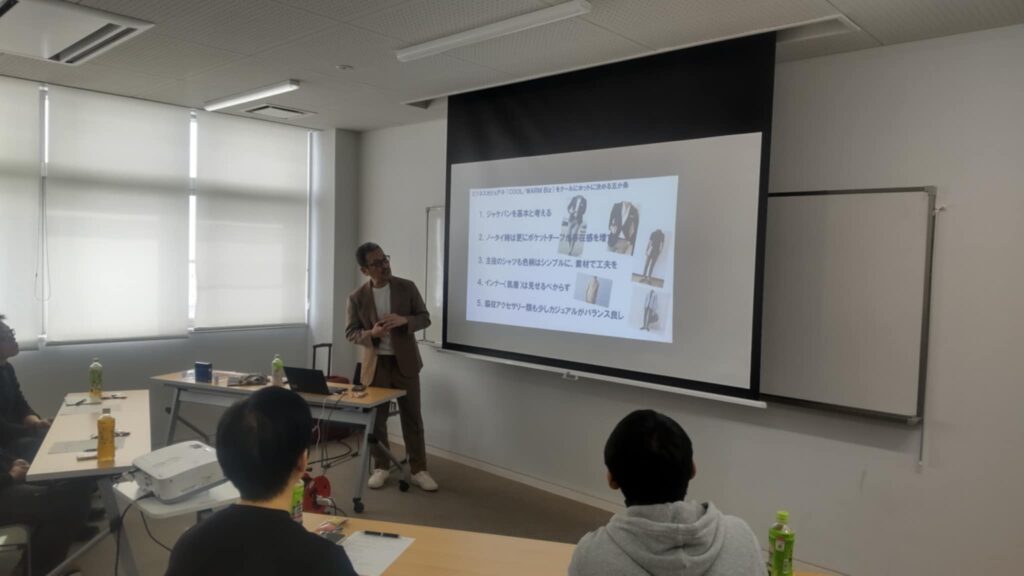 まずは洋服の歴史を岩倉使節団の写真からスタートし、予め参加者の皆さんから寄せていただいた質問などに丁寧にお答えいただき、自己紹介と続きました。